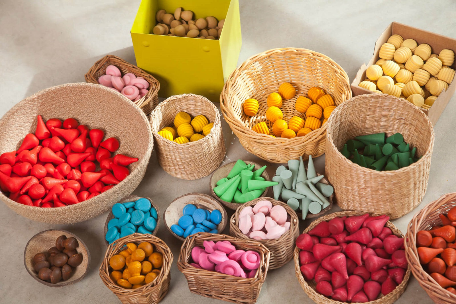 Un materiale aperto che invita bambini e bambine a esplorare forme, creare combinazioni e dare forma alla propria immaginazione attraverso la manipolazione, il raggruppamento e la sperimentazione di pattern.
